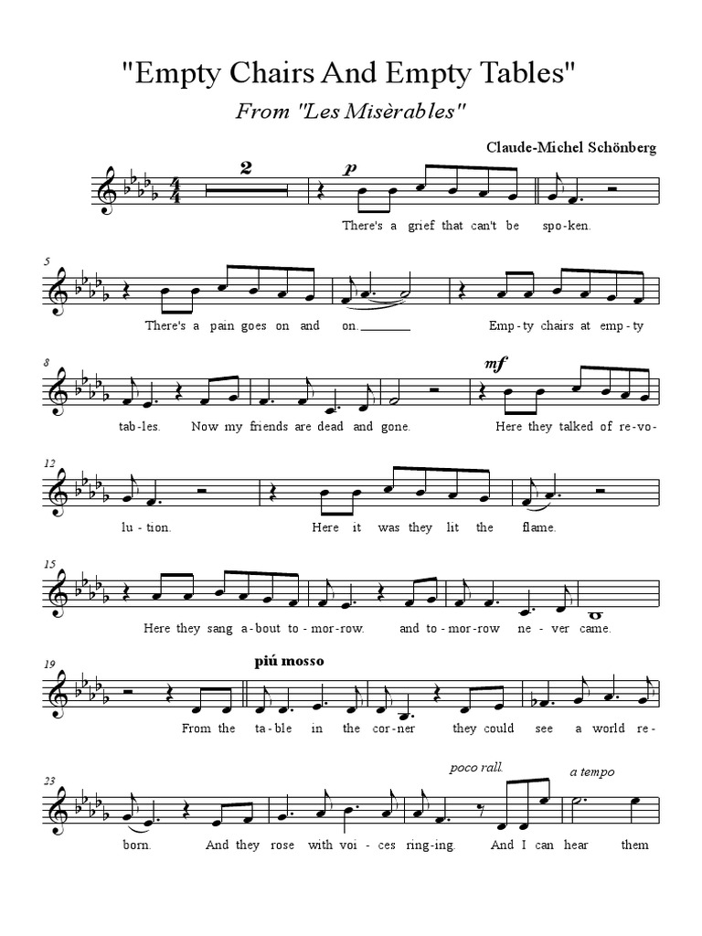 Empty Chairs At Empty Tables (from Les Miserables) Voice Digital Empty Chairs At Empty Tables Story “empty chairs at empty tables” is a song from the musical “les miserables” based on the book of the same title by victor hugo. michael ball performs the song that launched his career on stage. 'empty chairs at empty tables' from the musical. 56 rows empty chairs at empty tables is a solo sung by the character. Empty Chairs At Empty Tables Story.